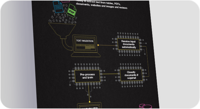 SOLUTION Ability to extract text from tables, PDFs, documents, websites and images and reviews F TEXT INGESTION Receive input documents automatically Pre-process Classify and train documents if required INSIGHTS JSON CSV XML XLSX Classify text Extract relevant information Summarization as per into structured output of data to requirement in XLSX, CSV, JSON, XML generate insights Copyright © teX.ai